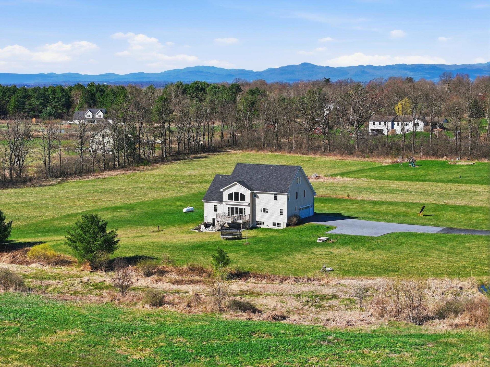 Set on five picturesque acres in sought-after Charlotte, Vermont, this 2019 contemporary colonial offers an exceptional blend of refined living and natural beauty. Framed by sweeping Green Mountain views?including iconic Camel's Hump?and bordered by 55 acres of conserved land, the setting is both peaceful and inspiring, with direct access to neighborhood walking paths leading toward Mount Philo State Park. A covered, west-facing front porch welcomes you with golden sunset skies before stepping inside to a dramatic great room, where soaring 18-foot cathedral ceilings and expansive windows capture meadow views and ever-changing light. Birch hardwood floors extend throughout both levels, complemented by custom millwork, built-ins, and generously scaled rooms designed for comfort and style. The heart of the home is a beautifully appointed kitchen featuring quartz countertops, Energy Star stainless appliances, and thoughtfully designed cabinetry with exceptional storage. A large island with integrated wine/workspace creates a natural gathering place, seamlessly connecting to the great room and formal dining area?ideal for both everyday living and entertaining. The main-level primary suite offers a private retreat with a spa-like bath, complete with dual vanities, a soaking tub, and walk-in shower. Upstairs, a second ensuite with a deluxe bath and dual closets is joined by additional bedrooms and a flexible office or study. A striking balcony overlooks the great room and frames distant mountain vistas, creating a graceful connection between levels. The walkout lower level is filled with natural light and offers excellent space for recreation, fitness, or relaxation, opening to a patio and landscaped grounds. Enjoy morning light from the rear deck, and take advantage of the third-floor attic, ready for future expansion or creative use. A rare opportunity to enjoy elevated country living just moments from trails, nature, and an easy commute to Burlington or Middlebury.